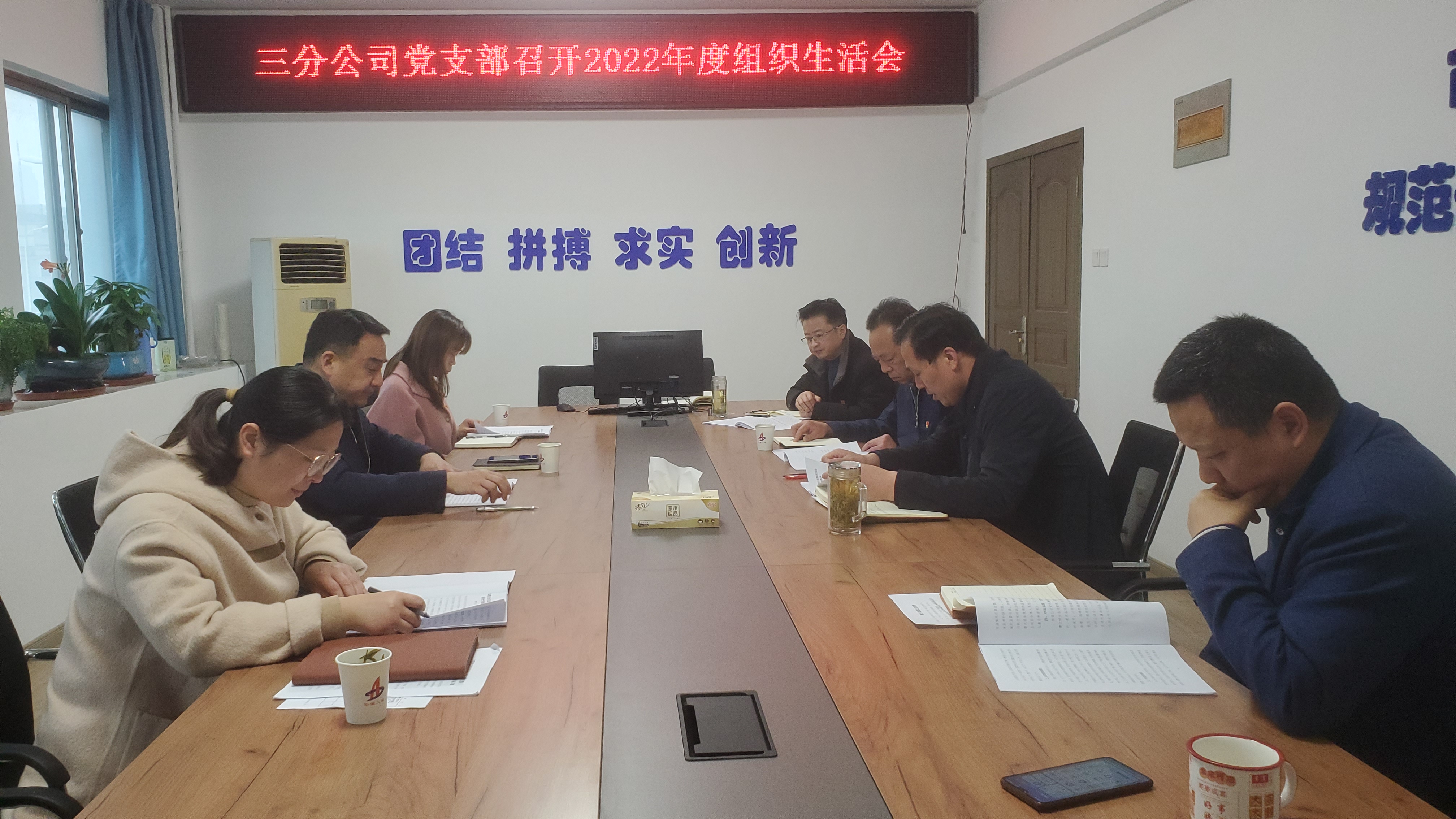 3月21日上午,第三分公司黨支部召開2022年度組織生活會,公司黨委委員、紀委書記沈壯,黨委工作部副主任李勝瀾、紀檢監(jiān)察室相關(guān)人員到會指導。分公司領(lǐng)導班子成員參加會議。