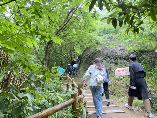 綠色健康毅行,再走革命路。為了切身體會革命先烈在大山之間的艱苦生活,團員青年進行了“再走革命路”健康毅行活動。一路上大家彼此幫助、相互鼓勵,沿著蜿蜒的山路不斷向上。歷經(jīng)2個多小時的跋涉,全體團員青年成功抵達山頂。立于山頂,長風(fēng)撲面,放眼四望,巍巍群山盡收眼底,一時間,感嘆祖國山河壯麗的自豪之情油然而生,大家情不自禁地吟出“會當(dāng)凌絕頂,一覽眾山小”“江山如此多嬌”等詩句,用最“純情”的方式,向偉大祖國“告白”。