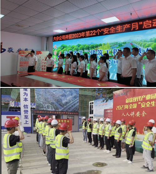 6月1日,第六分公司組織在建項目部舉行“安全生產(chǎn)月”活動啟動儀式。通過安全宣誓、安全簽名、懸掛條幅、展牌、觀看安全警示片等形式,營造“安全生產(chǎn)月”活動氛圍。