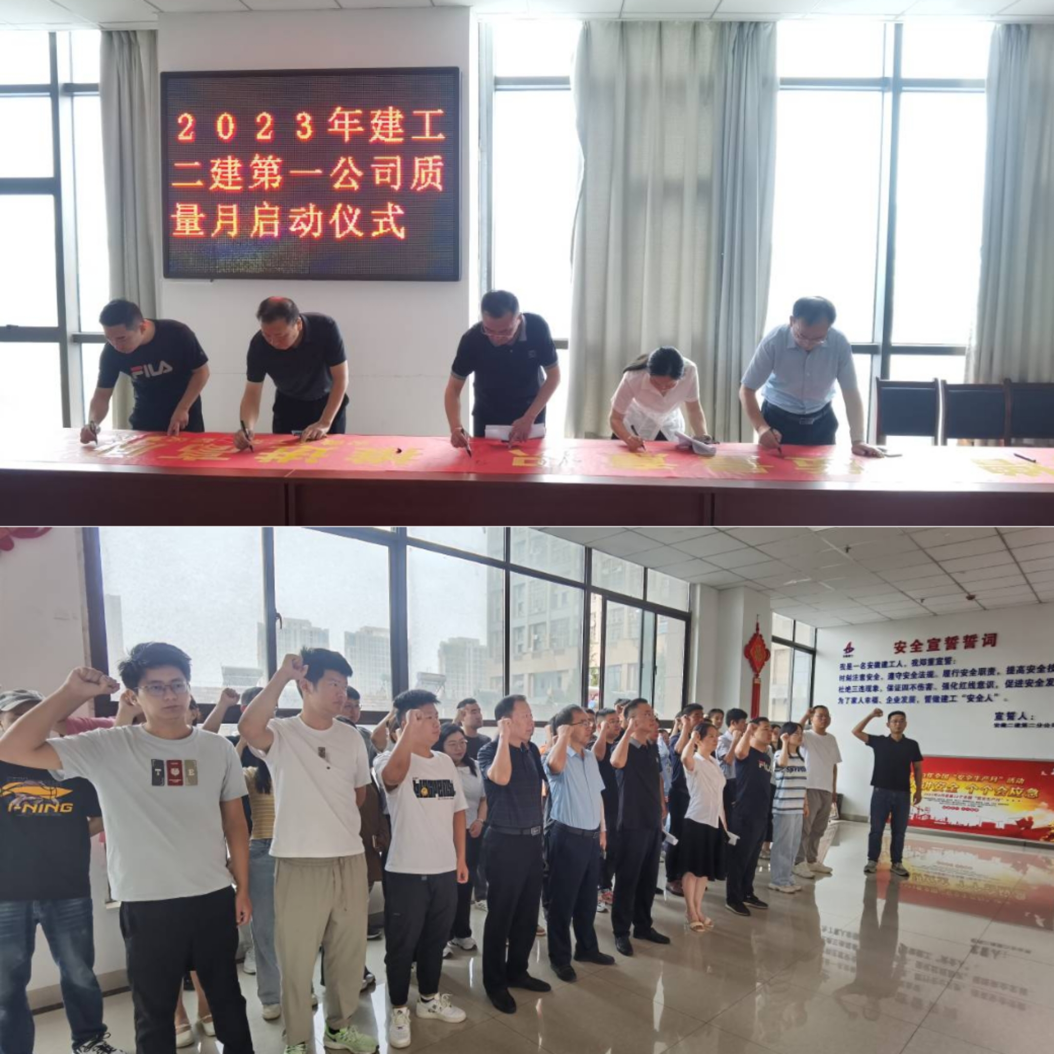 為深入落實(shí)2023年全國(guó)“質(zhì)量月”活動(dòng)要求,9月4日上午,第一公司舉行2023年“質(zhì)量月”活動(dòng)啟動(dòng)儀式,開展宣誓及簽名活動(dòng)。第一公司領(lǐng)導(dǎo)班子、機(jī)關(guān)全體職工參加。