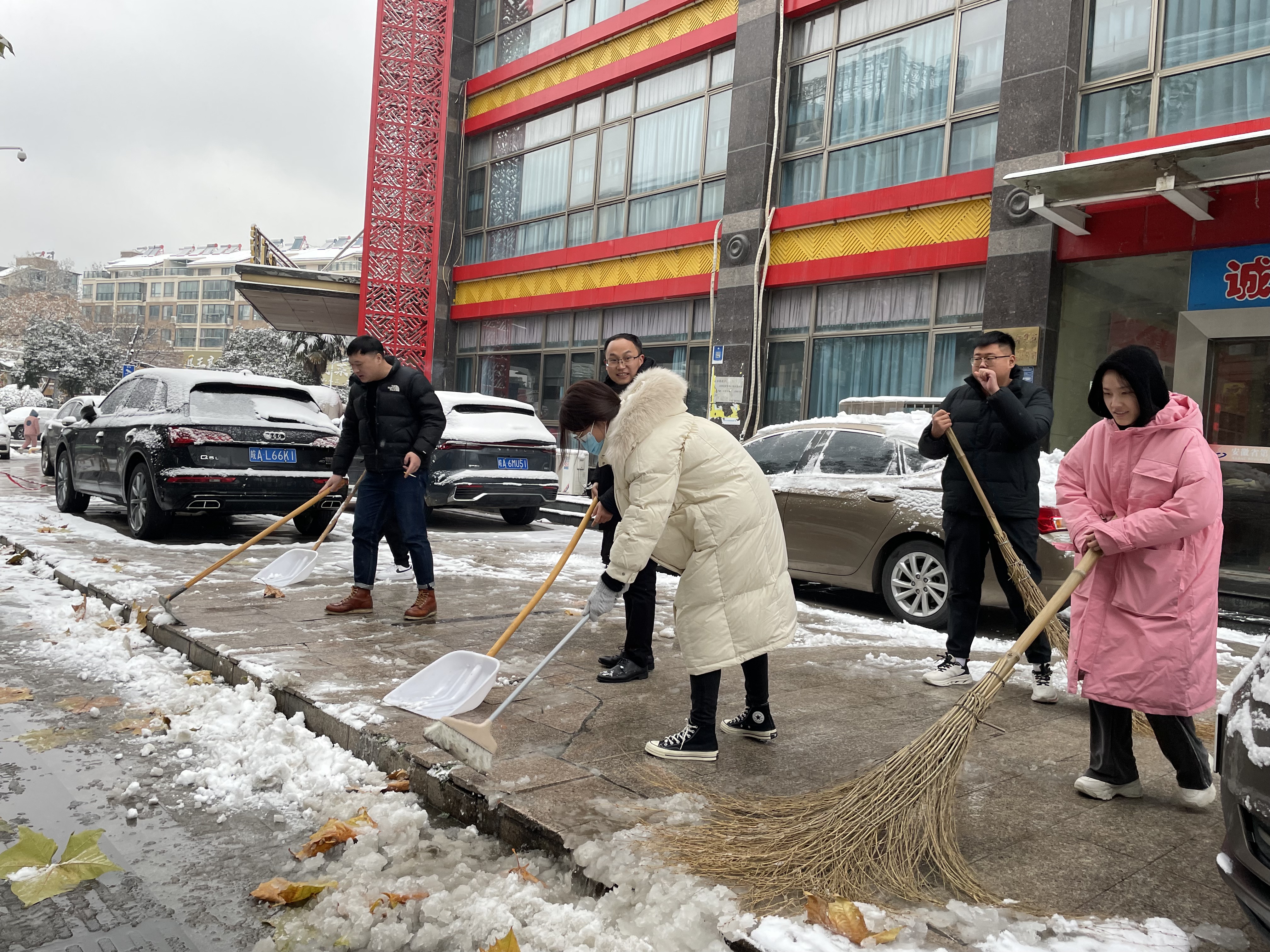 青年團員積極響應,不畏嚴寒,手拿鐵鍬、掃帚來到辦公樓前,對積雪進行大清掃。伴隨著凜冽的寒風奮戰(zhàn)一個多小時,終于將公司門口和內部道路積雪全部清理,開辟了一條洋溢著溫情的通暢安全路。