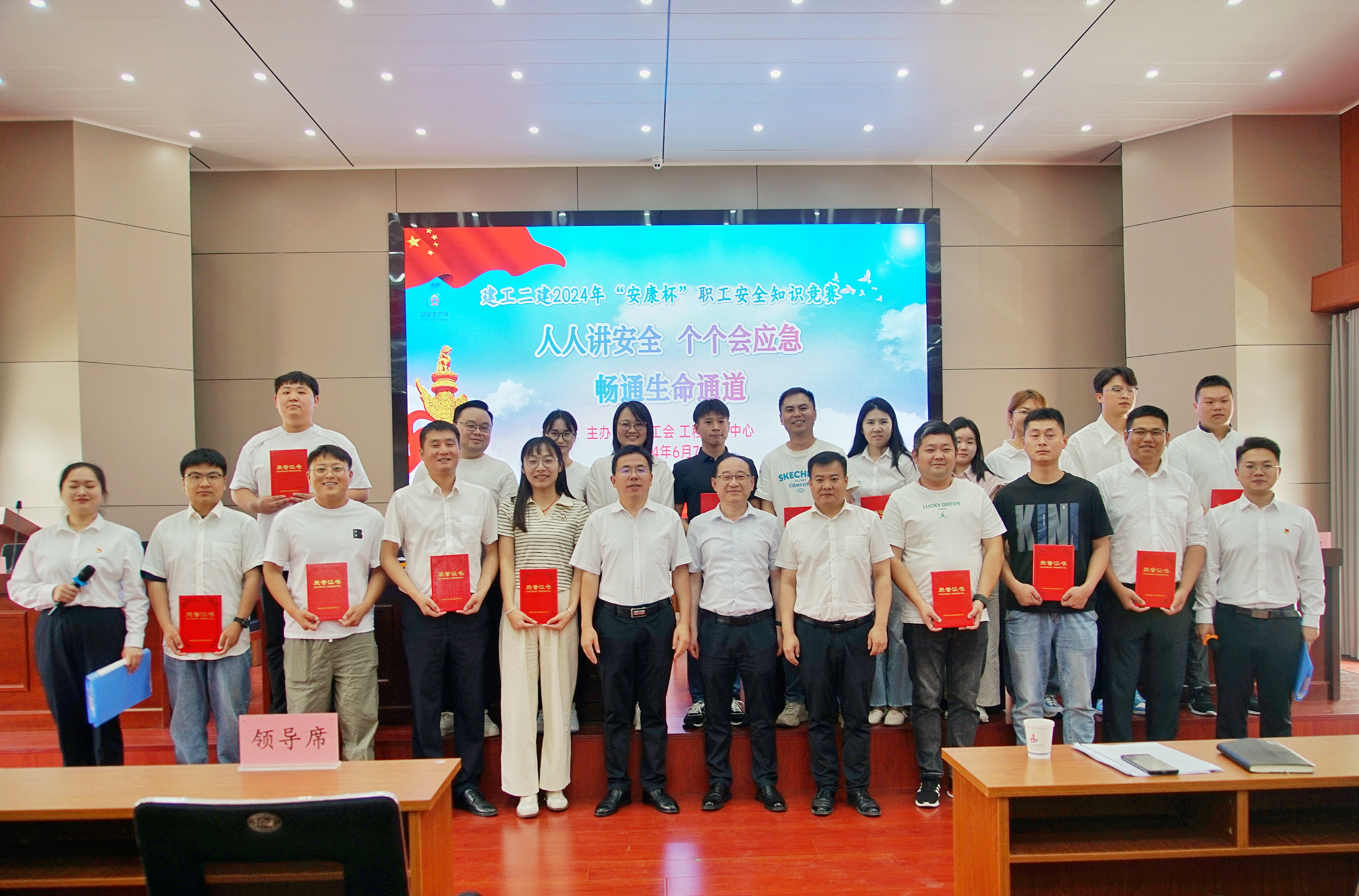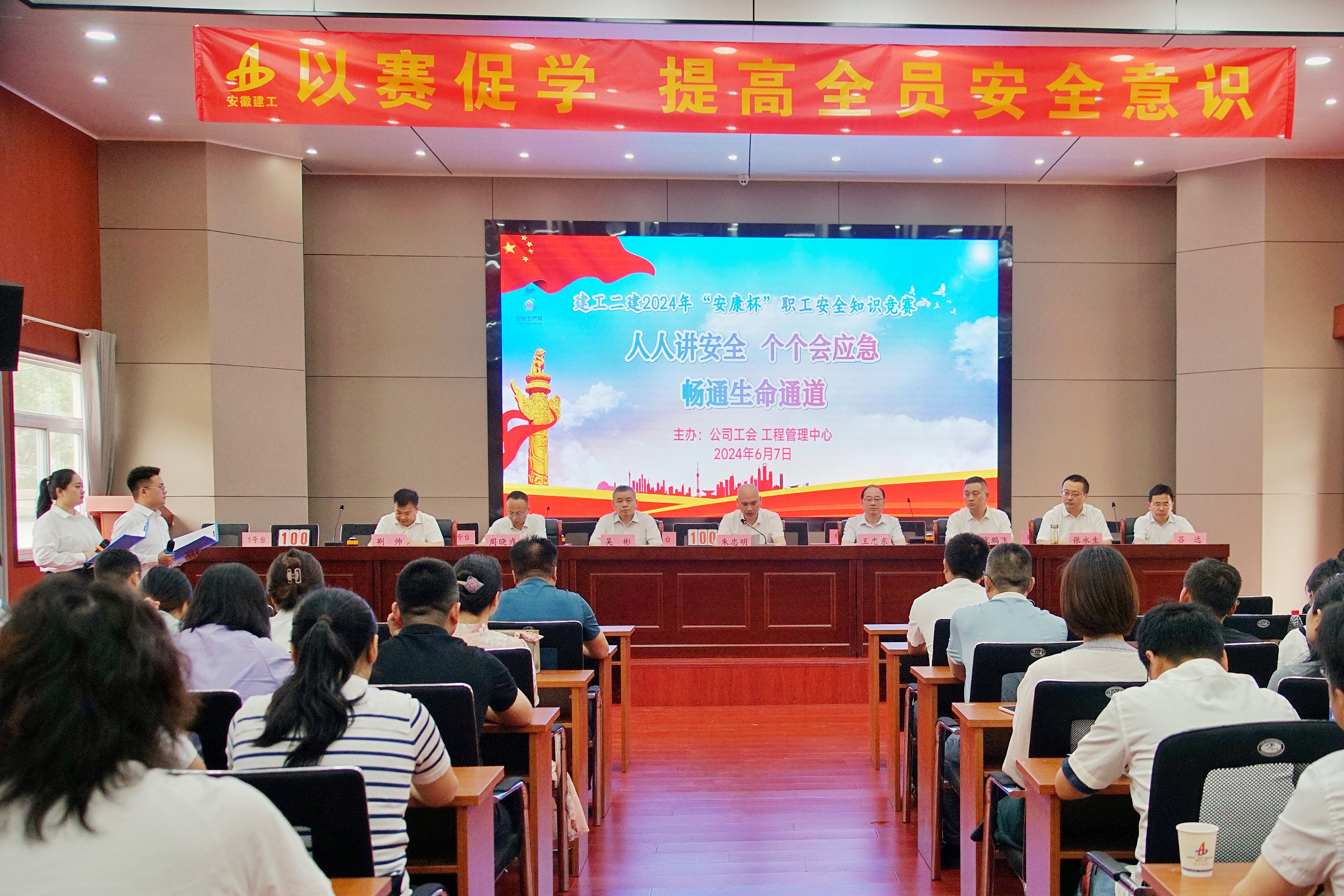 今年6月是第23個(gè)全國“安全生產(chǎn)月”。6月7日上午,由建工二建工會(huì)、工程管理中心聯(lián)合舉辦的“安康杯”職工安全知識(shí)競賽活動(dòng)如期舉行。建工股份副總經(jīng)理,建工二建黨委書記、董事長朱忠明致開幕辭,活動(dòng)特別邀請集團(tuán)工程管理中心王忠東主管擔(dān)任比賽評委。公司領(lǐng)導(dǎo)班子成員、機(jī)關(guān)部門負(fù)責(zé)人、所屬單位分管領(lǐng)導(dǎo)及相關(guān)科室成員、項(xiàng)目經(jīng)理代表、參賽職工等百余人參加活動(dòng)。