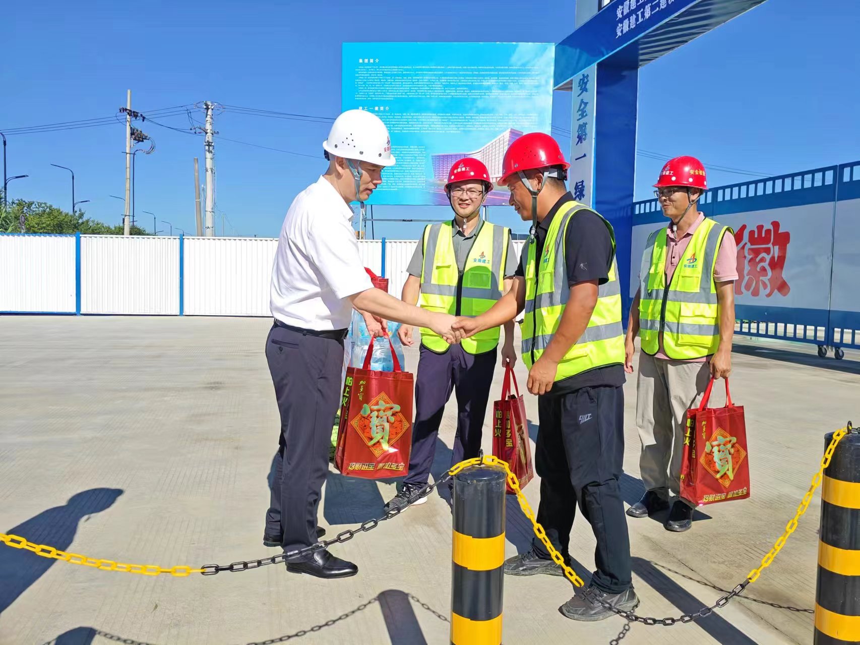 在項目現(xiàn)場,朱忠明詳細(xì)了解項目整體建設(shè)進度,認(rèn)真檢查項目安全生產(chǎn)措施落實及人員工作生活保障情況,親切看望慰問一線建設(shè)者并送上防暑降溫用品,叮囑大家做好防暑降溫,注意勞逸結(jié)合,加強防護,確保自身安全和健康。