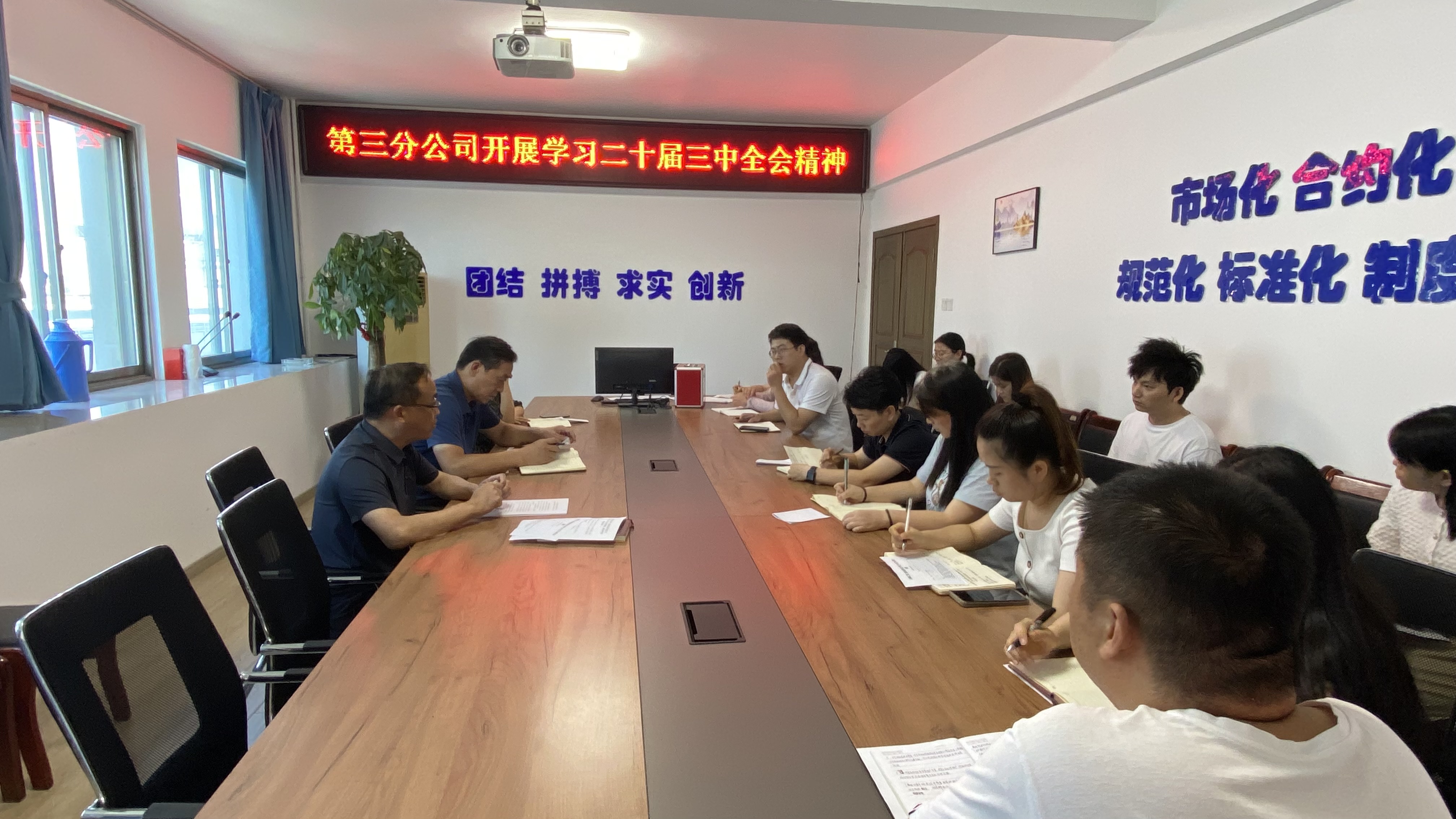 為深入學習貫徹黨的二十屆三中全會精神,引導黨員干部準確領會精神實質。近日,第三分公司黨支部組織召開學習黨的二十屆三中全會精神專題會,機關全體職工參加學習。