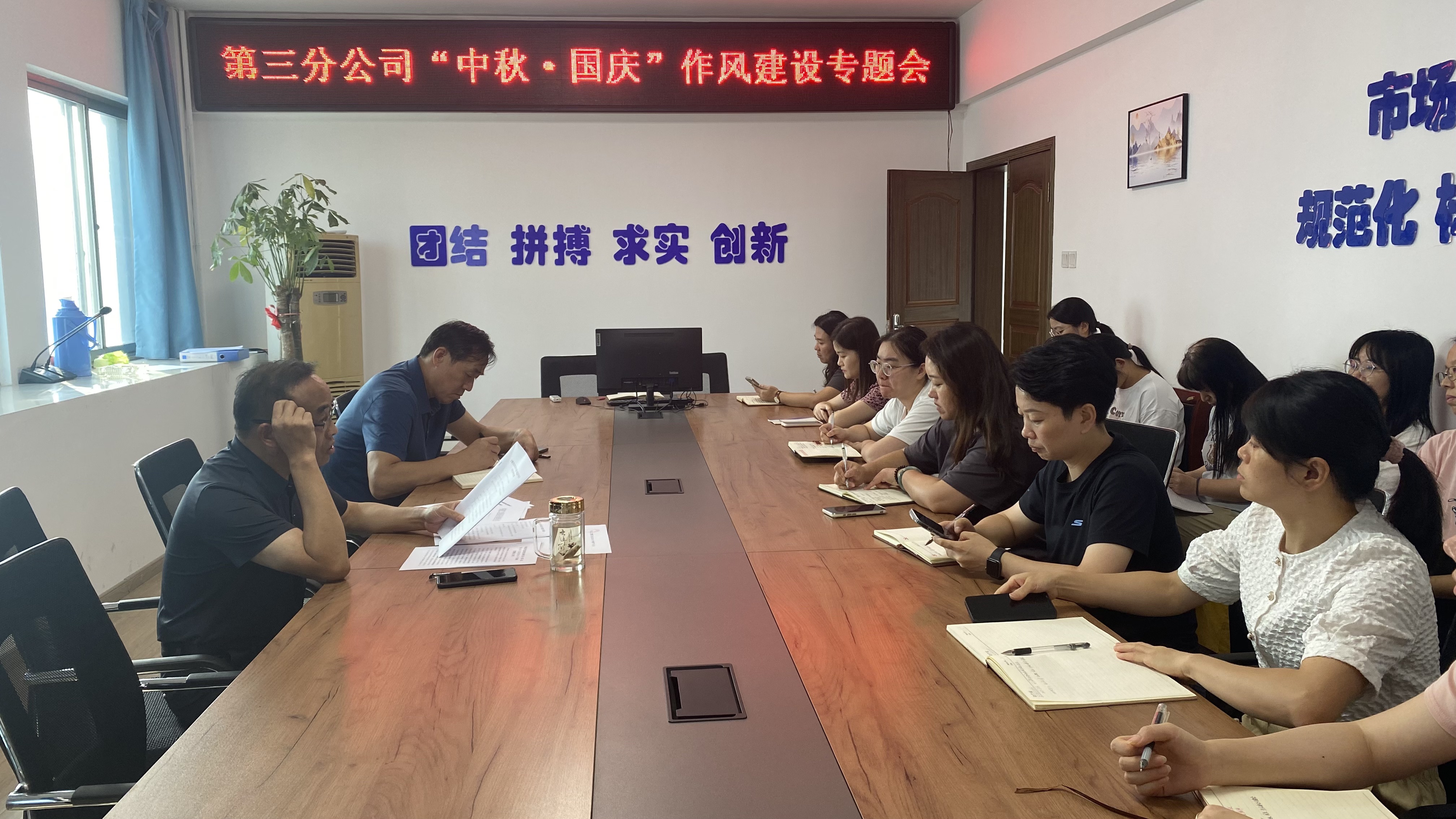 為進(jìn)一步加強“中秋、國慶”期間紀(jì)律作風(fēng)建設(shè),增強分公司全員廉潔自律意識,營造風(fēng)清氣正的節(jié)日氛圍,9月12日下午,第三分公司召開“中秋、國慶”節(jié)前作風(fēng)建設(shè)專題會,會議由黨支部書記司圣華主持。