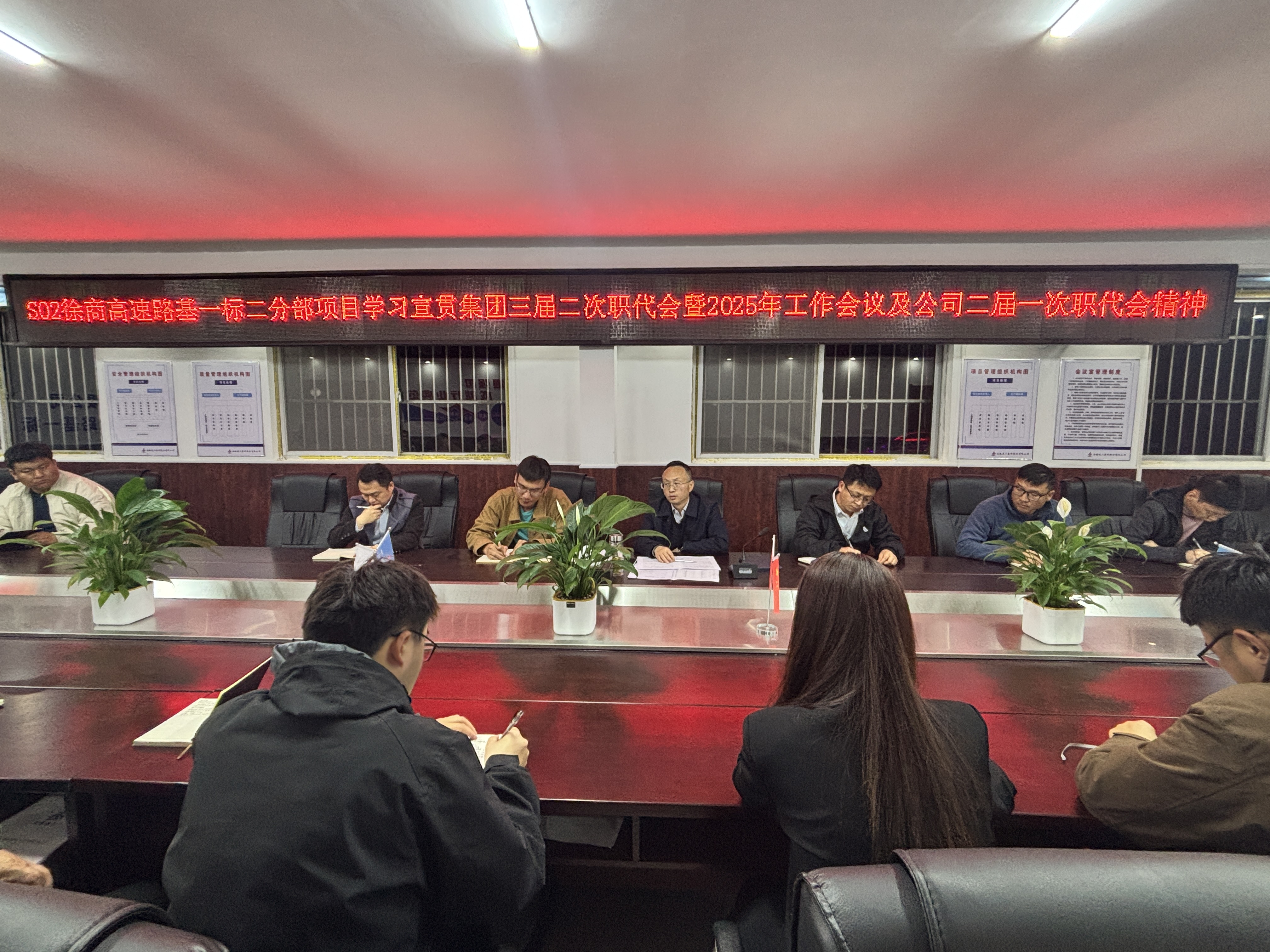 3月27日,宿州投發(fā)公司黨委委員、副總經(jīng)理周曉彧赴徐商路基一標(biāo)二分部,帶領(lǐng)項(xiàng)目部全體人員深入學(xué)習(xí)宣貫集團(tuán)三屆二次職代會(huì)暨2025年工作會(huì)議精神及公司二屆一次職代會(huì)精神。