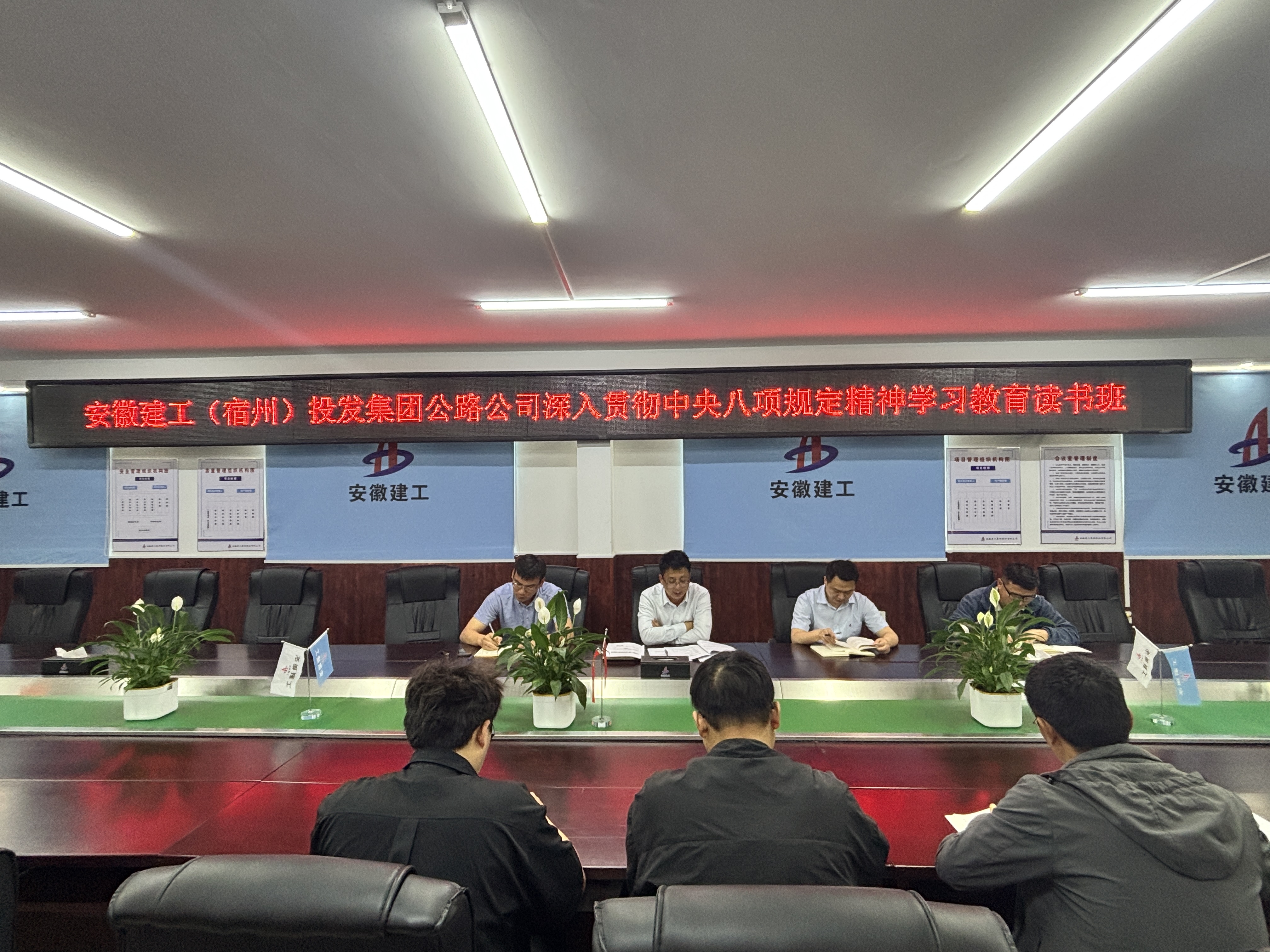 近日,宿州投發(fā)公路公司舉辦深入貫徹中央八項規(guī)定精神學(xué)習(xí)教育讀書班。公路公司黨支部副書記、副經(jīng)理郭文鏢領(lǐng)學(xué),S02徐商高速路基一標(biāo)二分部項目班子成員及全體黨員參會并開展研討。