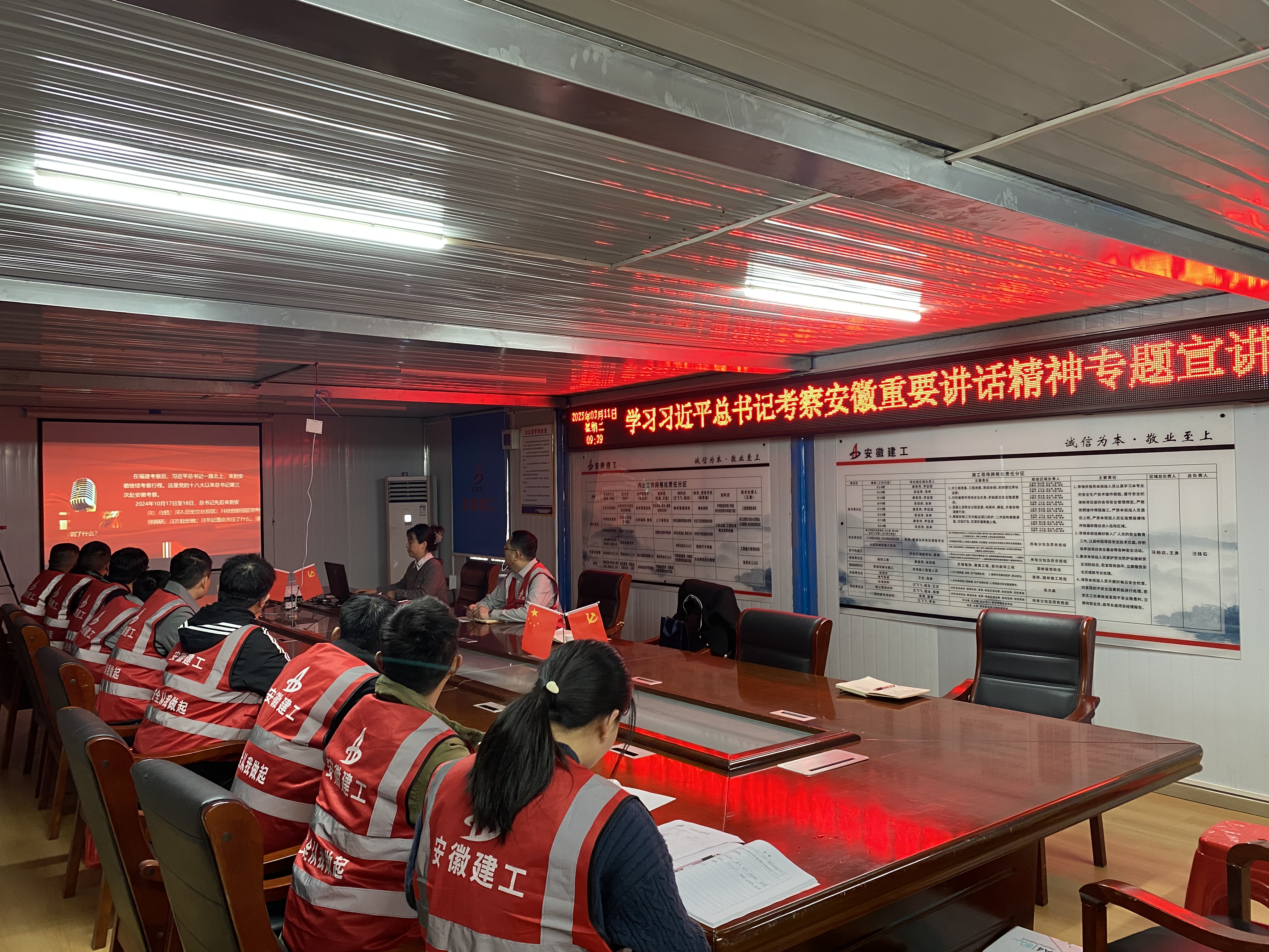 徐晶晶圍繞習(xí)近平總書記考察安徽重要講話精神,詳細解讀了觀古巷、看新城、謀未來等內(nèi)容。會議強調(diào)要堅持黨建引領(lǐng),充分發(fā)揮基層黨支部的戰(zhàn)斗堡壘作用和黨員的先鋒模范作用。隨后項目經(jīng)理汪桂石傳達學(xué)習(xí)了安徽建工集團三屆二次職代會暨2025年工作會議精神及公司二屆一次職代會精神。