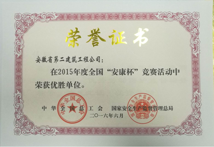 近日,安徽二建公司被評為2015年度全國“安康杯”競賽優(yōu)勝單位,并在日前召開的安徽省總工會(huì)“安康杯”競賽總結(jié)會(huì)上獲通報(bào)表彰。這是公司繼獲得2014年度安徽省“安康杯”競賽優(yōu)勝企業(yè)后再獲國家級榮譽(yù)。