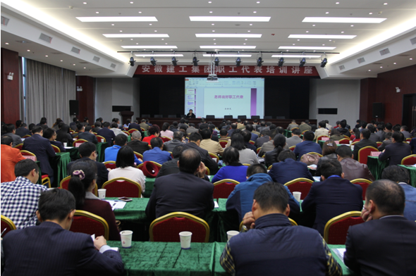 為提高集團(tuán)公司職工代表參政議政的素質(zhì)和能力,2016年11月7日下午,公司組織14名職工代表參加集團(tuán)公司在安建大廈三樓會(huì)議室舉辦的首屆職工代表培訓(xùn)講座,講座特邀省總工會(huì)民主管理部部長余新茂授課。集團(tuán)工會(huì)主席徐曉光、副主席吳曉伍、女工主任胡愛紅等集團(tuán)機(jī)關(guān)及各子公司工會(huì)主席、集團(tuán)職工代表、各基層工會(huì)主席等200余人參加了此次培訓(xùn)講座。