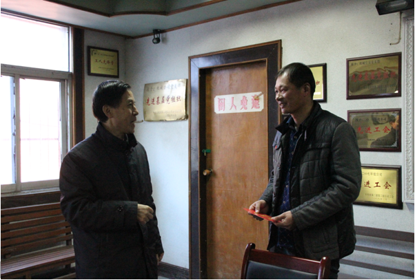 2017年1月16日下午,集團公司總經(jīng)理劉家靜、工會主席徐曉光、工會副主席吳曉伍一行來到公司,開展春節(jié)前對困難職工的走訪慰問活動。公司黨委書記劉賢奇、工會主席李林等陪同慰問。