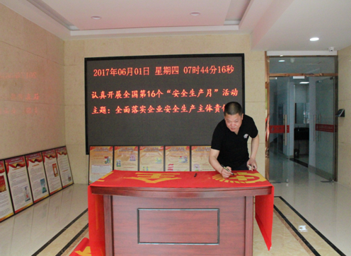 6月1日上午,安全管理部精心準備,利用安全宣傳展板,懸掛橫幅、電子屏幕播放“安全生產(chǎn)月”主題活動等形式進行宣傳,并與工會共同開展“安全生產(chǎn)月”宣誓簽名活動。公司領導班子成員及各部門職工100余人參加宣誓并鄭重簽名。