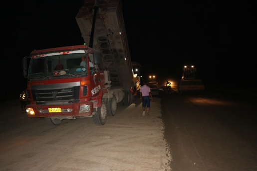 白天,烈日炎炎,驕陽似火,當大多數(shù)人對室外的高溫望而卻步,躲在空調(diào)房內(nèi)納涼避暑之時,卻有這樣一群可敬的人頂著烈日、冒著酷暑,揮汗如雨,在高溫的“烤”驗下仍堅守崗位。他們平凡無奇,對高溫也并非有特別的忍耐力,只因身上肩負著“一流建工夢”的擔子,讓他們堅持著。夜晚,為了推進太和ppp項目建設(shè)工期進度,照樣加班加點的干。夜晚九點多的施工現(xiàn)場,自卸車川流不息,穿著橘黃色馬甲的施工人員,揮舞著導(dǎo)流棒對來往車輛進行分流,工人正在鋪裝瀝青,壓路機來回壓實,熱火朝天。