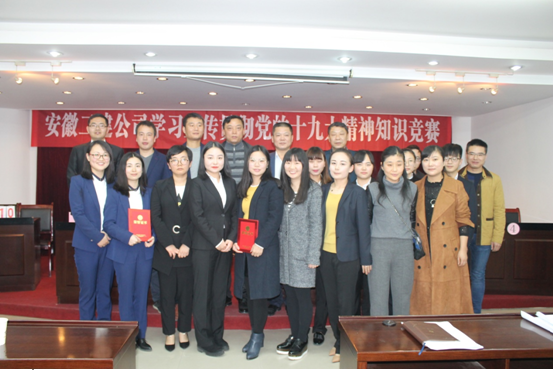 經(jīng)過三輪激烈的比賽,最終由一分公司第一代表隊(duì)獲得本次學(xué)習(xí)十九大精神知識(shí)競(jìng)賽的一等獎(jiǎng);機(jī)關(guān)第二代表隊(duì)、后勤綜合服務(wù)部代表隊(duì)分獲二等獎(jiǎng);安裝公司代表隊(duì)、二分公司代表隊(duì)以及四分公司代表隊(duì)分獲三等獎(jiǎng)。