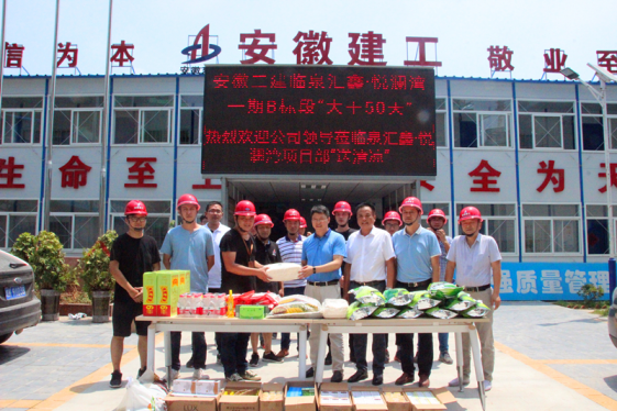連日來(lái),氣溫的一路飆升給夏季施工帶來(lái)了嚴(yán)峻的考驗(yàn),頂烈日、冒酷暑、戰(zhàn)高溫、趕進(jìn)度、促生產(chǎn),一個(gè)個(gè)大汗淋漓的身影詮釋著安徽建工人特別能吃苦、特別能戰(zhàn)斗的奉獻(xiàn)精神。為了關(guān)愛員工身體健康和做好夏季防暑降溫工作,陸勤斌為一線職工送去花露水、藿香正氣水、綠豆及茶葉等防暑降溫用品,并叮囑現(xiàn)場(chǎng)負(fù)責(zé)人合理安排或縮短戶外作業(yè)時(shí)間,加強(qiáng)防暑降溫知識(shí)的宣傳教育,提高一線職工在高溫作業(yè)下的自我保護(hù)意識(shí)和防范能力,切實(shí)做好日常防暑降溫物品的發(fā)放工作,確保夏季施工安全。