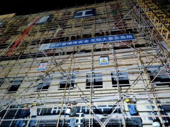 經(jīng)過近2個月奮戰(zhàn),湖北項目成果斐然,目前,2#樓6層,建筑面積6537.02㎡,已交付業(yè)主單位亮化施工。
