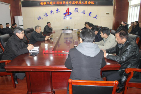 1月14日下午,安徽二建公司召開領導及中層管理人員會議,宣布安徽建工集團控股有限公司關于安徽二建公司領導班子調整的決定。建工控股黨委工作部部長、建工股份黨委副書記徐文聯出席會議,公司領導班子、機關部門負責人、分公司黨政主要領導參會。