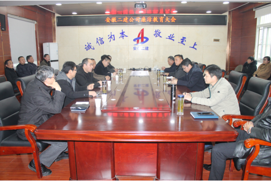 1月14日,安徽二建公司召開廉潔教育大會,公司領導班子成員以及中層管理人員參加會議,黨委副書記、紀委書記仇多維主持會議。