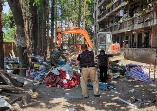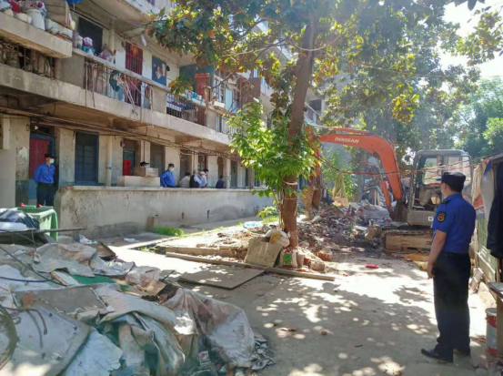 后勤綜合服務(wù)部和城管科工作人員聯(lián)合拆除違章搭建