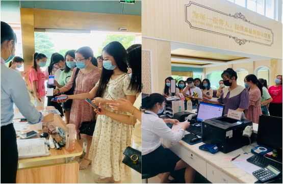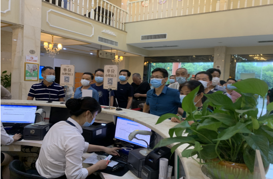 出示安康碼、量體溫進(jìn)入體檢大廳