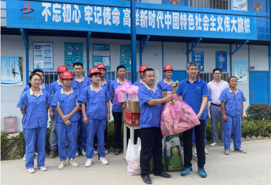 7月31日下午,烈日炎炎,暑氣蒸人,公司副總經(jīng)理余華恒、工會(huì)女工主任王俊一行赴文一·塘溪津門、文一·春風(fēng)里項(xiàng)目送清涼,看望和慰問奮戰(zhàn)在施工一線項(xiàng)目管理人員。