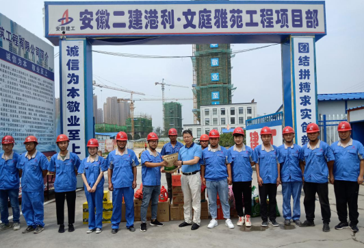 炎炎夏日,酷熱似火。8月12日,安徽二建公司總經(jīng)理陸勤斌,工會(huì)女工主任王俊一行蒞臨淮北國金華府(紫麟苑)、淮北恒基城安貞大廈、淮北港利文庭雅苑項(xiàng)目開展2020年“送清涼”活動(dòng)。
