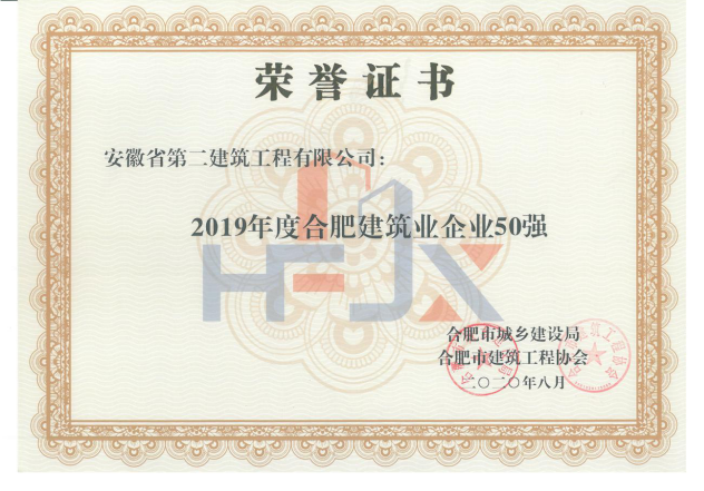 日前,公司被合肥市城鄉(xiāng)建設局、合肥市建筑工程協(xié)會授予“2019年度合肥市50強建筑業(yè)企業(yè)”、“優(yōu)秀施工總承包企業(yè)”、“質量管理先進企業(yè)”、“安全管理先進企業(yè)”、“外向輸出先進企業(yè)”、“優(yōu)秀起重設備安裝工程專業(yè)承包企業(yè)”稱號。祝超、詹濤、虞捷三名同志獲“合肥市優(yōu)秀項目經(jīng)理”稱號。