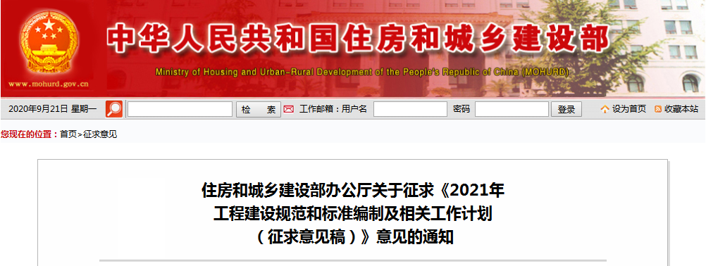 住房和城鄉(xiāng)建設(shè)部就《2021年工程建設(shè)規(guī)范和標(biāo)準(zhǔn)編制及相關(guān)工作計(jì)劃(征求意見稿)》征求意見