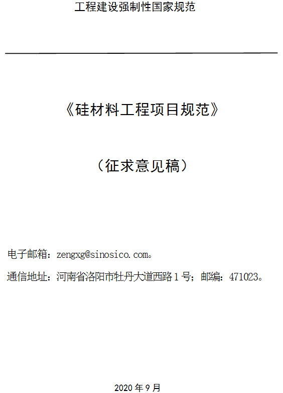 《硅材料工程項目規(guī)范(征求意見稿)》
