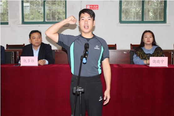 隨后運動員代表端建軍和裁判員代表余鴻順分別進(jìn)行了宣誓,公司總經(jīng)理、黨委副書記陸勤斌宣布安徽二建公司第四屆職工籃球賽正式開幕,饒曉寧主任為首場比賽開球。