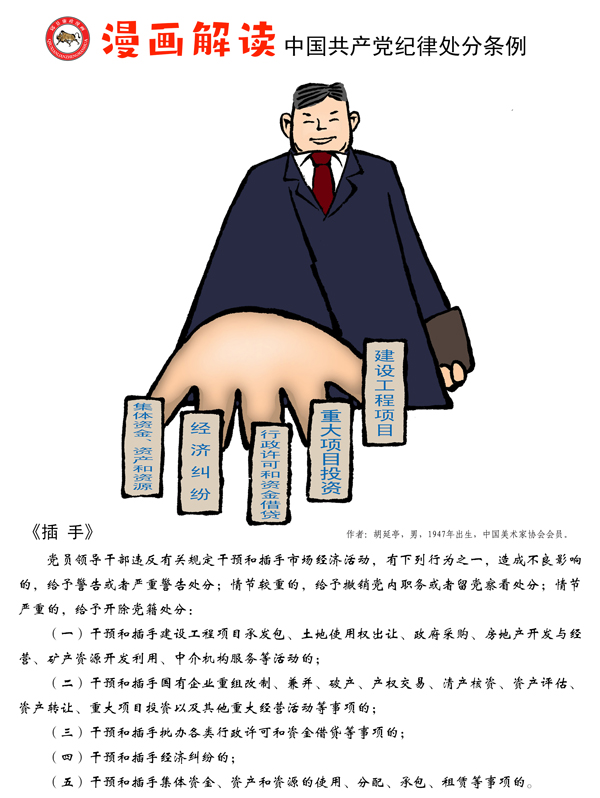 編者按:紀(jì)律是我們黨的生命線,加強紀(jì)律建設(shè)是全面從嚴(yán)治黨的治本之策。為深入貫徹落實十九屆中央紀(jì)委四次全會關(guān)于加強黨紀(jì)國法教育的部署要求,強化黨規(guī)黨紀(jì)的學(xué)習(xí)宣傳、貫徹執(zhí)行,使鐵的紀(jì)律真正轉(zhuǎn)化為黨員干部的日常習(xí)慣和自覺遵循,中央紀(jì)委國家監(jiān)委網(wǎng)站聯(lián)合河北省紀(jì)委監(jiān)委,以漫畫形式對《中國共產(chǎn)黨紀(jì)律處分條例》進行解讀,陸續(xù)連載刊發(fā),敬請關(guān)注。