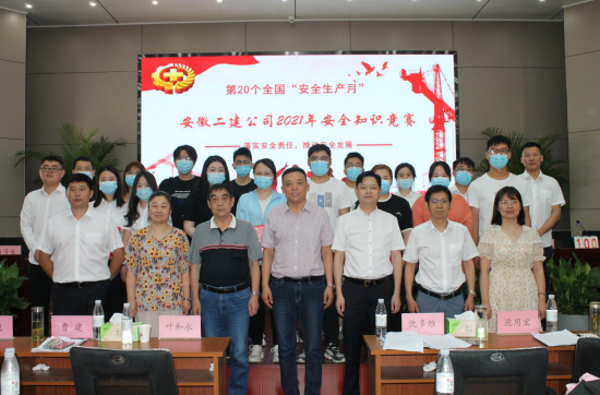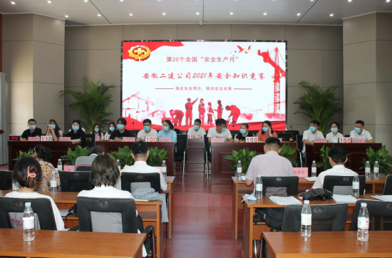在全國(guó)第20個(gè)“安全生產(chǎn)月”到來(lái)之際。為了營(yíng)造濃厚的安全生產(chǎn)氛圍,人人講安全、人人重視安全。6月7日下午,在安徽二建公司新會(huì)議室舉行以“落實(shí)安全責(zé)任,推動(dòng)安全發(fā)展”為主題的安全知識(shí)競(jìng)賽。公司黨委副書記、紀(jì)委書記仇多維,副總經(jīng)理葉和永,安全總監(jiān)、安全管理部主任曹建,黨委工作部主任施用宏,工會(huì)副主席、女工主任王俊出席活動(dòng)并擔(dān)任評(píng)委。14支代表隊(duì)及領(lǐng)隊(duì)共120多人參加。