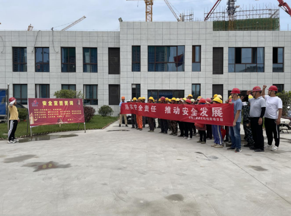 安全負責(zé)人趙志文帶領(lǐng)全體人員進行安全宣誓。項目經(jīng)理徐良帶領(lǐng)全體人員在以“落實安全責(zé)任,推動安全發(fā)展”為主題的橫幅上簽名。