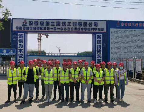 自一分公司承建宿州應(yīng)用技術(shù)學校項目以來,在公司及分公司領(lǐng)導(dǎo)的大力支持下,整個項目面貌煥然一新。拔地而起的塔吊,進進出出的車輛,上下不停的施工電梯、繁忙有序的流水作業(yè)面無不展現(xiàn)著項目的“新生”。學校項目從前那副荒草叢生、死氣沉沉的景象早已消散在當?shù)厝说挠洃浿?,安徽二建用自己的活力與速度一舉消除了原中標單位長期停工所帶來的不良社會影響。