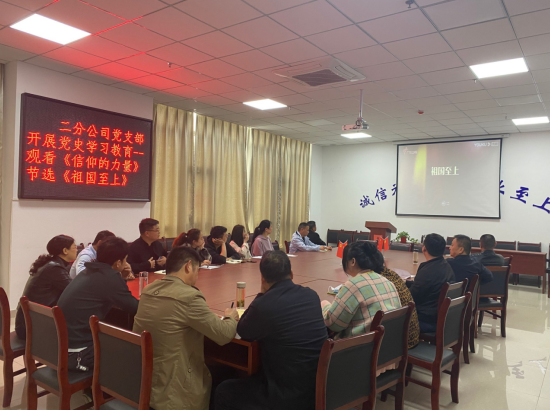 為認(rèn)真貫徹落實(shí)習(xí)近平總書記在中央黨史學(xué)習(xí)教育動(dòng)員大會(huì)上的重要講話精神,進(jìn)一步深入貫徹公司黨委關(guān)于開展黨史學(xué)習(xí)教育的文件精神。4月16日,二分公司黨支部開展黨史學(xué)習(xí)教育活動(dòng),組織黨員和干部職工觀看電影《長(zhǎng)征》及紀(jì)錄片《信仰的力量》節(jié)選《祖國(guó)至上》。