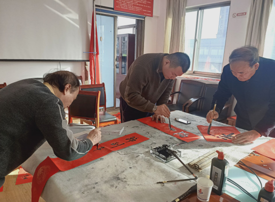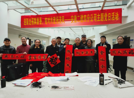 春節(jié)臨近,為營造喜慶、祥和、熱烈的新春氛圍,豐富分公司文化內(nèi)涵,弘揚(yáng)中華優(yōu)秀傳統(tǒng)文化。1月29日下午,安徽二建四分公司黨支部組織開展“迎新送福飄墨香,結(jié)對共建揚(yáng)清風(fēng)”寫春聯(lián)送祝福主題黨日活動?;顒友埩税不帐⌒滤能姎v史研究會淮海委員會會長張振山、副會長楊承愉,安徽省書法家協(xié)會會員牛中民、朱良謀等一行現(xiàn)場揮毫寫春聯(lián),分公司機(jī)關(guān)近30余人參加了活動。