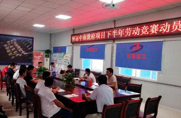 競賽中,銅陵吾悅廣場項目根據(jù)關鍵節(jié)點有針對性的編排工作計劃,對S4丶S5丶S6屋面防水、樓梯間涂料及地下室機電安裝等進行專項跟蹤。同時對施工班組下達任務書,約談施工隊伍,嚴格按照時間節(jié)點執(zhí)行,組織管理人員對現(xiàn)場進行分工消項,協(xié)調各班組有序施工,嚴格把控質量,處理遺漏問題。每天召開生產調度會,對當日未按照節(jié)點完成的班組進行處罰,各班組匯報當日施工人員,與各自的工作進展,項目部第一時間解決問題。懷遠中南·瓏府項目在施工期間遭遇當?shù)囟嗄旰币娧雌冢姥炊妊葱蝿莓惓谰?,工期受到嚴重影響。面臨汛前節(jié)點工期壓力,項目領導班子就勞動競賽方案在汛期的工作內容進行了調整,帶領員工在保證質量和安全的同時加班加點,克服重重困難,沖在一線,保證產值目標順利完成,在堅持不懈的努力下,中南·瓏府項目于9月15日順利完成公司質量月觀摩活動。文一塘溪津門項目為保障項目快速推進,爭搶工期,根據(jù)現(xiàn)場實際情況采取相應的措施,嚴格執(zhí)行例會制度,準時召開調度會,確保各項工作高效有序推進。