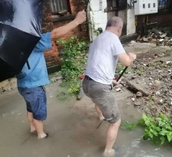 汛情就是命令,搶險就是責(zé)任。后勤黨員干部全體人員緊急行動。一是立即召開防汛救災(zāi)搶險工作緊急會議,總經(jīng)理助理蒯家江要求大家統(tǒng)一思想、提高站位、壓實責(zé)任、聽從指揮,加強(qiáng)隱患排查,勇于擔(dān)當(dāng)、不怕吃苦,第一時間發(fā)現(xiàn)險情報告并進(jìn)行處置,確保轄區(qū)內(nèi)住戶的生命財產(chǎn)安全。二是成立后勤黨支部防汛救災(zāi)搶險突擊小組。主任書記分別任正副組長,并對防汛救災(zāi)搶險工作做了分工和工作安排。三是立即啟動預(yù)案,根據(jù)汛情需要科學(xué)安排搶險救援任務(wù)、防汛物資準(zhǔn)備。其次整合后勤維修班人員沖在一線對老舊房區(qū)域地面進(jìn)行排澇排污,清除垃圾和廢棄物。要求全體員工從18日起進(jìn)入24小時緊急待命狀態(tài),保持手機(jī)暢通,隨時準(zhǔn)備投入到防汛救災(zāi)搶險的工作中去。四是加強(qiáng)公司轄區(qū)內(nèi)老舊平房區(qū)域的巡查檢視力度,包干劃片作業(yè),責(zé)任到人,后勤辦負(fù)責(zé)人負(fù)責(zé)總體調(diào)度協(xié)調(diào),與轄區(qū)政府、街道、社區(qū)溝通對接。五是加強(qiáng)對各處內(nèi)澇地點進(jìn)行排水,疏通管道,積極配合轄區(qū)街道做好防汛救災(zāi)搶險工作。同時對公司生活小區(qū)存在安全隱患的住戶,進(jìn)行引導(dǎo)疏散,截至18日上午10時,14、15棟平房20戶住家已經(jīng)全部安全疏散。