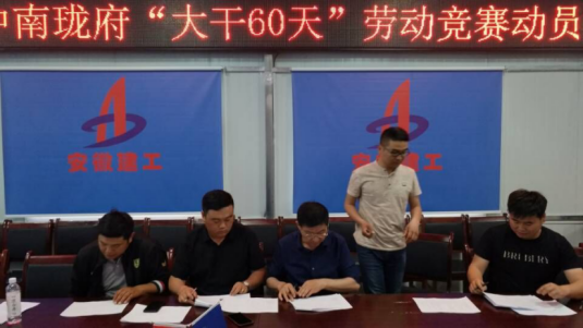 為確保“大干60天”勞動(dòng)競賽順利進(jìn)行,三公司懷遠(yuǎn)中南·瓏府項(xiàng)目積極響應(yīng)公司要求,提前籌劃,科學(xué)組織,合理安排,制定了切實(shí)可行的勞動(dòng)競賽方案,做好人員分工,物資設(shè)備提前計(jì)劃等工作。召開動(dòng)員大會,提出“大干60天,產(chǎn)值五千萬”的口號,并與各班組簽訂目標(biāo)責(zé)任書,明確獎(jiǎng)罰,鼓勵(lì)班組奮勇爭先,營造大干氛圍。