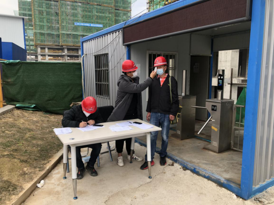 項(xiàng)目部按計(jì)劃搶抓工期,全力推進(jìn)項(xiàng)目建設(shè)的同時(shí),以做好項(xiàng)目現(xiàn)場(chǎng)疫情防控為前提,實(shí)行“半封閉+強(qiáng)防護(hù)”管理,在備足口罩、消毒液、洗手液等防護(hù)用品的同時(shí),嚴(yán)格執(zhí)行門(mén)禁、實(shí)名制管理制度,做好每天體溫測(cè)量和記錄臺(tái)賬,食堂堅(jiān)持嚴(yán)把食品五道關(guān),嚴(yán)格執(zhí)行分餐制,避免聚集,提倡工人、管理人員居住在現(xiàn)場(chǎng)員工和工人宿舍,并按每間寢室最多居住不超過(guò)4人的標(biāo)準(zhǔn)安排住宿,最大程度上保障現(xiàn)場(chǎng)作業(yè)人員的身體健康與生命安全,確保項(xiàng)目復(fù)工安全有序進(jìn)行。“36.6℃,體溫正常,請(qǐng)戴好口罩!”走進(jìn)項(xiàng)目部,隨處可見(jiàn)新冠肺炎疫情防控的宣傳標(biāo)語(yǔ),廣播中一遍又一遍地重復(fù)播放著疫情防控的注意事項(xiàng)。