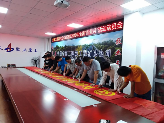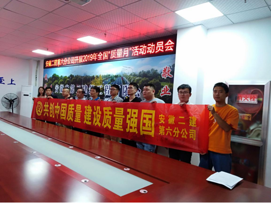 為認(rèn)真落實(shí)安徽建工集團(tuán)股份有限公司關(guān)于開展2019年“質(zhì)量月”活動的通知,9月3日,第六分公司召開2019年“質(zhì)量月”活動專題會進(jìn)行宣貫,組織職工進(jìn)行橫幅簽名活動,以“共創(chuàng)中國質(zhì)量 建設(shè)質(zhì)量強(qiáng)國”為主題,大力營造“人人重視高質(zhì)量,人人創(chuàng)造高質(zhì)量,人人享受高質(zhì)量”的良好氛圍,進(jìn)一步規(guī)范質(zhì)量安全行為,提高質(zhì)量安全管理水平,全面提升項目管理水平,要求項目部按照“質(zhì)量月”活動內(nèi)容,結(jié)合項目實(shí)際,精心安排、周密部署,以“質(zhì)量月”活動為契機(jī),加大項目質(zhì)量宣傳力度,進(jìn)一步提高全員質(zhì)量意識,開展質(zhì)量示范創(chuàng)建,創(chuàng)建公司質(zhì)量品牌,牢固樹立全心全意為用戶提供優(yōu)質(zhì)服務(wù)的安徽建工一流企業(yè)現(xiàn)象。
