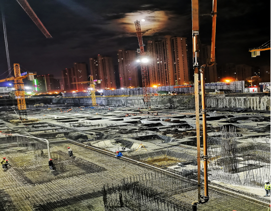 施工進入白熱化階段,遇到材料短缺、勞務(wù)班組緊張等困難,分公司領(lǐng)導(dǎo)更高度重視,組建了由各個科室負責(zé)人參加的“重點項目工作協(xié)調(diào)QQ群”,把項目遇到的難題及時反饋并予以解決,分公司經(jīng)理馬福才、支部書記陳習(xí)武更是經(jīng)常駐扎現(xiàn)場,解決勞務(wù)外援、協(xié)調(diào)處理大宗主材進場等問題。在每日召開的生產(chǎn)調(diào)度會上,項目經(jīng)理汪傳松多次強調(diào),要超前謀劃,科學(xué)組織,大膽管理,各勞務(wù)班組根據(jù)現(xiàn)有工作面盡快增加班組和一線作業(yè)工人,上足人員;項目部要合理配置人力、物力、塔吊等垂直運輸設(shè)備,安排好工序銜接,實現(xiàn)晝夜不間斷施工,同時要確保“大干大安全、小干有安全”,針對業(yè)主6月20日提出正負零節(jié)點計劃,項目部制定了四點措施:一是分解目標(biāo),細化責(zé)任,日排計劃,要求現(xiàn)場施工人員根據(jù)圖紙認真梳理計算各標(biāo)段工程量,詳細分解施工任務(wù);二是明確現(xiàn)場責(zé)任分工,加大管理力度,督促現(xiàn)場盯控力度,保障工程質(zhì)量;三是加大協(xié)調(diào)力度,優(yōu)化資源,整合機械設(shè)備發(fā)揮最大的生產(chǎn)力;四是加強與勞務(wù)班組負責(zé)人的溝通,明確節(jié)點任務(wù),輸貫信念,激發(fā)工人潛力,提高工作效率。全體人員要同心協(xié)力,充分發(fā)揮團結(jié)奮進精神,要見縫插針,穿插作業(yè),要有“搶晴天戰(zhàn)雨天,白天晚上加班干”的精神,強勢推進施工進度。從5月12日到5月25日已完成產(chǎn)值2300萬,創(chuàng)安徽二建公司月產(chǎn)值歷史新高;截至目前,鋼筋用量1700噸;混凝土用量11000方,平均每日混凝土澆筑量550方。
