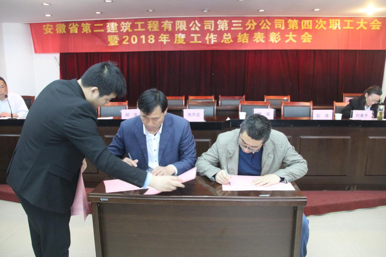 會上,公司黨委工作部對分公司領(lǐng)導(dǎo)班子及班子成員進(jìn)行民主測評,對后備干部進(jìn)行民主推薦;馬福才經(jīng)理和各項(xiàng)目經(jīng)理簽訂《目標(biāo)責(zé)任狀》、《勞動(dòng)競賽責(zé)任狀》,為各責(zé)任主體完成全年指標(biāo)下達(dá)了“任務(wù)書”、確立了考核依據(jù);對過去一年在各自崗位上作出突出貢獻(xiàn)的先進(jìn)科室、項(xiàng)目及個(gè)人進(jìn)行表彰,更好地發(fā)揮了榜樣引領(lǐng)作用,促進(jìn)形成崇尚先進(jìn)、學(xué)習(xí)先進(jìn)、爭當(dāng)先進(jìn)的良好氛圍。