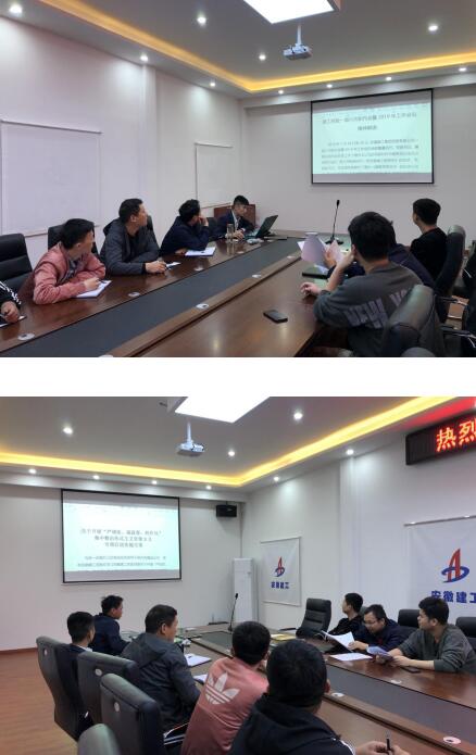 3月18日晚上,文一·塘津門五標(biāo)段項(xiàng)目組織召開《建工控股一屆六次職代會暨2019年工作會議》 《關(guān)于開展“嚴(yán)規(guī)矩、強(qiáng)監(jiān)督、轉(zhuǎn)作風(fēng)”集中整治形式主義官僚主義專項(xiàng)行動實(shí)施方案》專題學(xué)習(xí)會,會議由項(xiàng)目經(jīng)理蒯聲文主持,項(xiàng)目部全體員工參會。