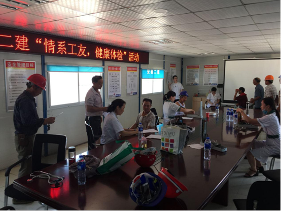 在會議室,工人們有序地排隊進行各項檢查,并不時提出各種健康疑問,醫(yī)生耐心的解答并指出夏季作業(yè)的注意事項。隨后,體檢結(jié)果由項目管理人員分發(fā)到工人手里,活動順利結(jié)束。