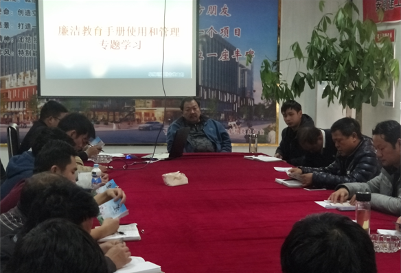 最后孟慶武書記作總結(jié)發(fā)言,希望通過這次開展廉潔教育手冊學(xué)習(xí)和保管的專題會,能進(jìn)一步增強項目部黨員領(lǐng)導(dǎo)干部和重要崗位管理人員的廉潔自律意識,提高拒腐防變能力,營造一個風(fēng)清氣正的工作環(huán)境。