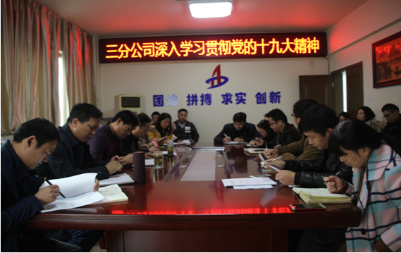 學(xué)習(xí)中,與會(huì)黨員認(rèn)真研讀了報(bào)告,并就黨的十九大主題、中國(guó)共產(chǎn)黨歷史使命、習(xí)近平新時(shí)代中國(guó)特色社會(huì)主義思想、堅(jiān)定不移全面從嚴(yán)治黨,以及貫徹新發(fā)展理念、建設(shè)現(xiàn)代化經(jīng)濟(jì)體系等章節(jié)和內(nèi)容進(jìn)行了重點(diǎn)學(xué)習(xí)領(lǐng)會(huì)。與此同時(shí),三分公司黨支部書(shū)記陳習(xí)武對(duì)如何進(jìn)一步學(xué)習(xí)貫徹黨的十九大精神提出了三點(diǎn)要求,他強(qiáng)調(diào):一是要把學(xué)習(xí)好貫徹好十九大精神作為當(dāng)前和今后一段時(shí)期的首要政治任務(wù),認(rèn)真學(xué)習(xí)領(lǐng)會(huì)核心要義和精神內(nèi)涵,始終在思想上、政治上、行動(dòng)上與習(xí)近平總書(shū)記為核心的黨中央保持高度一致;二是創(chuàng)新學(xué)習(xí)方式方法,堅(jiān)持學(xué)以致用。要通過(guò)報(bào)紙、電視和網(wǎng)絡(luò)等多種平臺(tái),通過(guò)集中學(xué)習(xí)、自學(xué)等方式,全面、準(zhǔn)確、深入地學(xué)習(xí)領(lǐng)會(huì)大會(huì)提出的一系列新思想、新提法、新觀點(diǎn)、新舉措,并要堅(jiān)持以學(xué)促做,切實(shí)用十九大精神指導(dǎo)實(shí)踐、推動(dòng)工作;三是每位黨員都要制定學(xué)習(xí)貫徹黨的十九大精神計(jì)劃,明確學(xué)習(xí)時(shí)間節(jié)點(diǎn),嚴(yán)格落實(shí),黨支部將把學(xué)習(xí)貫徹黨的十九大精神作為民主評(píng)議黨員的一項(xiàng)重要內(nèi)容。