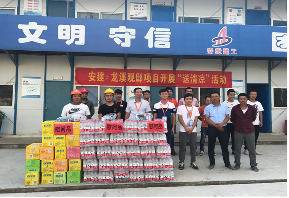炎炎夏日高溫無情,絲絲涼意公司有愛。自7月以來,氣溫持續(xù)升高,為應對高溫酷暑天氣龍溪觀邸項目部積極采取有效措施,及時開展夏季“送清涼”慰問活動,充分體現(xiàn)了項目部對廣大參建員工和農民工的關愛。