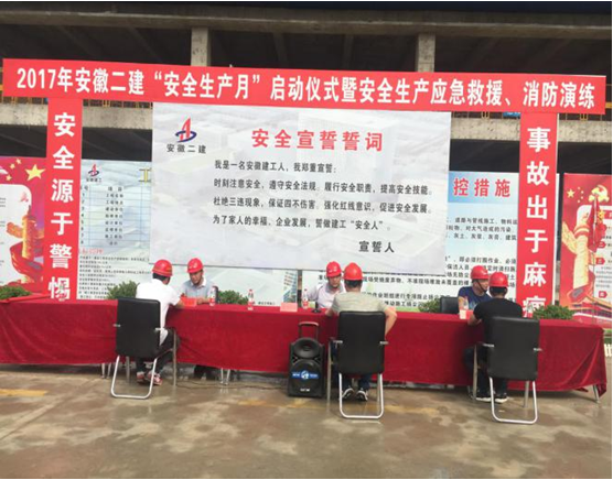 2017年6月8日上午,由安徽二建承建的太和發(fā)藝時尚文化園公共服務(wù)中心項目開展2017年“安全生產(chǎn)月”啟動儀式暨安全生產(chǎn)應(yīng)急救援、消防演練活動,正式拉開了以“全面落實企業(yè)安全生產(chǎn)主體責任”為主題的安全生產(chǎn)月活動序幕。公司副總經(jīng)理葉和永,安全管理部、工程管理部、保衛(wèi)部、太和PPP項目負責人、班組長、一線作業(yè)施工人員等百余人參加了此次活動。