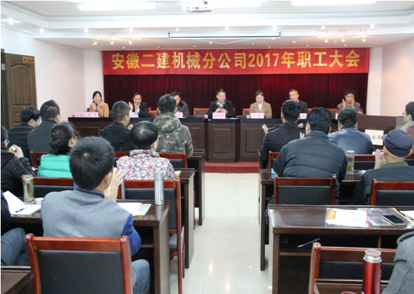 立足新起點,實現(xiàn)新跨越!3月23日上午,安徽二建機械分公司在原公司三樓會議室隆重召開2017年職工大會。公司黨委書記劉賢奇、紀(jì)委書記仇多維、女工主任王俊及機械分公司領(lǐng)導(dǎo)班子成員與職工40多人參加了會議。